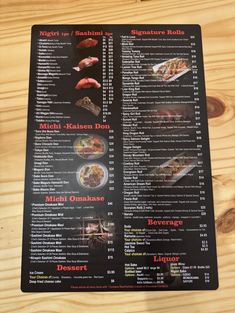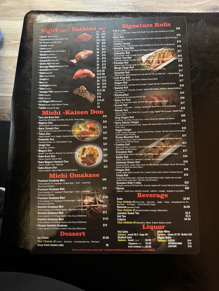 MiChi Japan Menu