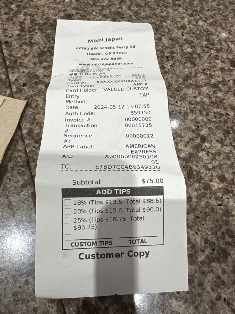 MiChi Japan is a casual and trendy Ramen - Sushi Bars spot located at 12282 SW Scholls Ferry Rd in Tigard, OR. With a menu featuring delicious options like salmon skin rolls, spicy miso ramen, sushi nigiri, and hibachi steak dinners, this place is a must-visit for Japanese cuisine lovers. Customers rave about the quality of the sushi and ramen, noting the flavorful dishes and cozy ambiance. The restaurant also offers amenities like free Wi-Fi, outdoor seating, and happy hour specials. Despite some minor wait times and small portion sizes, the overall dining experience at MiChi Japan is praised for its well-prepared dishes and attentive service. Whether you're craving a hearty ramen bowl or fresh sashimi, MiChi Japan is a great choice for a satisfying meal.