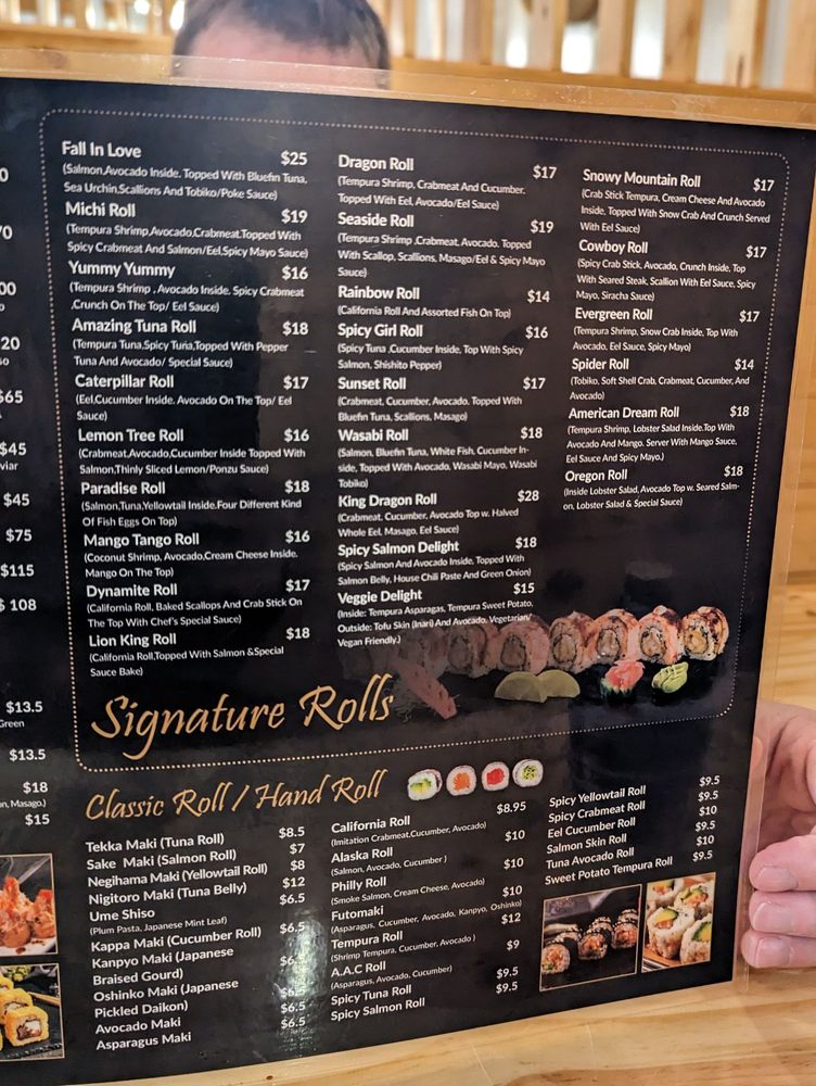(Salmon,avocado inside.Topped w.bluefin tuna, sea urchin,scallions and tobiko/poke sauce)